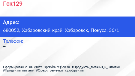 Гск129 по адресу 680052, Хабаровский край, Хабаровск, Покуса, 36/1 в дальнейшем Организация, размещена в следующих категориях: