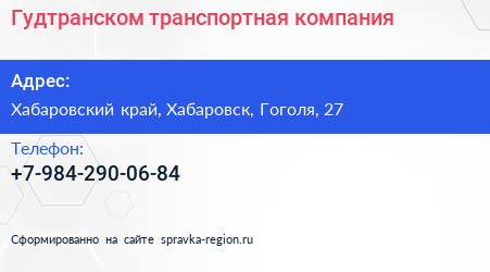 Гудтранском, транспортная компания по адресу Хабаровский край, Хабаровск, Гоголя, 27 в дальнейшем Организация, размещена в следующих категориях: