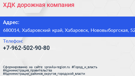 ХДК, дорожная компания по адресу 680014, Хабаровский край, Хабаровск, Нововыборгская, 52 в дальнейшем Организация, размещена в следующих категориях:
