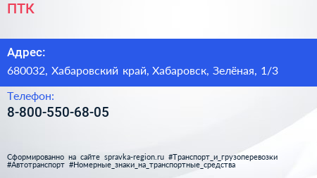 ПТК по адресу 680032, Хабаровский край, Хабаровск, Зелёная, 1/3 в дальнейшем Организация, размещена в следующих категориях: