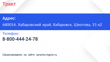 Тракт по адресу 680014, Хабаровский край, Хабаровск, Шкотова, 15 к2 в дальнейшем Организация, размещена в следующих категориях: