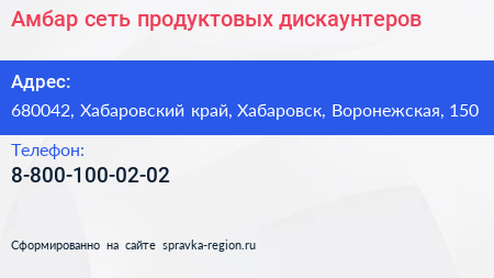 Амбар, сеть продуктовых дискаунтеров по адресу 680042, Хабаровский край, Хабаровск, Воронежская, 150 в дальнейшем Организация, размещена в следующих категориях: