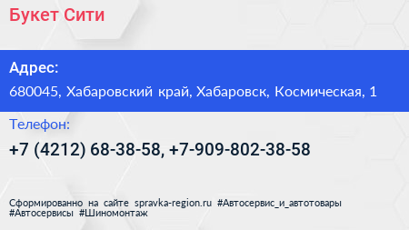Букет Сити по адресу 680045, Хабаровский край, Хабаровск, Космическая, 1 в дальнейшем Организация, размещена в следующих категориях: