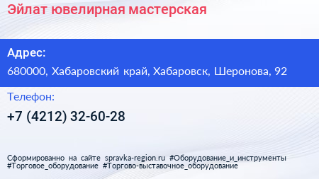 Эйлат, ювелирная мастерская по адресу 680000, Хабаровский край, Хабаровск, Шеронова, 92 в дальнейшем Организация, размещена в следующих категориях:
