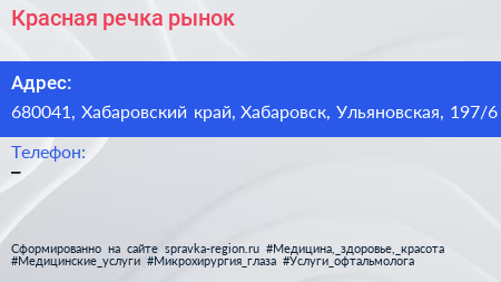 Красная речка, рынок по адресу 680041, Хабаровский край, Хабаровск, Ульяновская, 197/6 в дальнейшем Организация, размещена в следующих категориях: