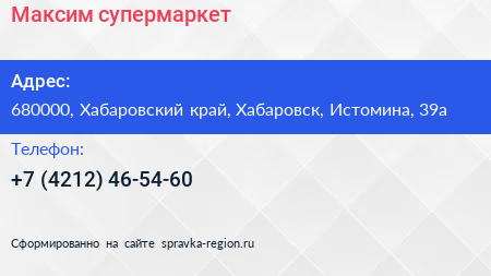 Максим, супермаркет по адресу 680000, Хабаровский край, Хабаровск, Истомина, 39а в дальнейшем Организация, размещена в следующих категориях: