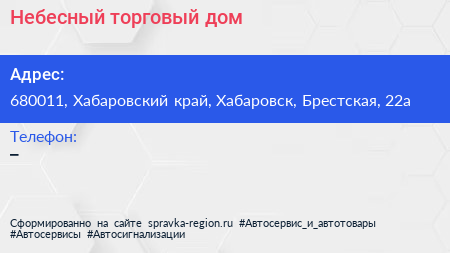 Небесный, торговый дом по адресу 680011, Хабаровский край, Хабаровск, Брестская, 22а в дальнейшем Организация, размещена в следующих категориях:
