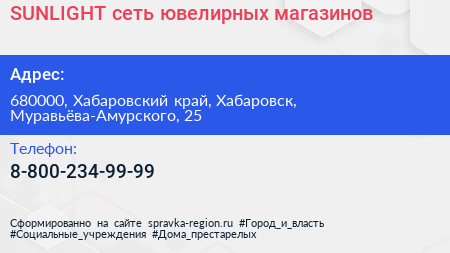 SUNLIGHT, сеть ювелирных магазинов по адресу 680000, Хабаровский край, Хабаровск, Муравьёва-Амурского, 25 в дальнейшем Организация, размещена в следующих категориях: