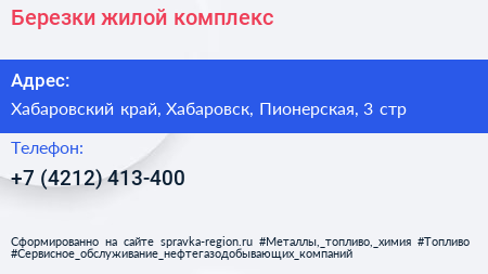 Березки, жилой комплекс по адресу Хабаровский край, Хабаровск, Пионерская, 3 стр в дальнейшем Организация, размещена в следующих категориях: