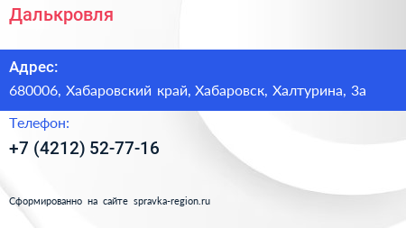 Далькровля по адресу 680006, Хабаровский край, Хабаровск, Халтурина, 3а в дальнейшем Организация, размещена в следующих категориях: