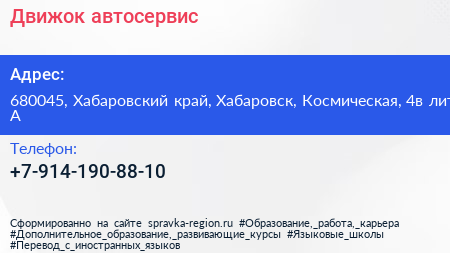 Движок, автосервис по адресу 680045, Хабаровский край, Хабаровск, Космическая, 4в лит А в дальнейшем Организация, размещена в следующих категориях: