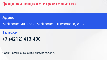 Фонд жилищного строительства по адресу Хабаровский край, Хабаровск, Шеронова, 8 к2 в дальнейшем Организация, размещена в следующих категориях: