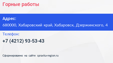 Горные работы по адресу 680000, Хабаровский край, Хабаровск, Дзержинского, 4 в дальнейшем Организация, размещена в следующих категориях: