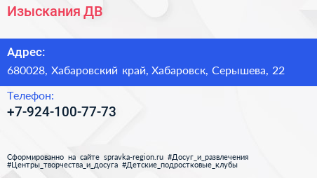 Изыскания ДВ по адресу 680028, Хабаровский край, Хабаровск, Серышева, 22 в дальнейшем Организация, размещена в следующих категориях: