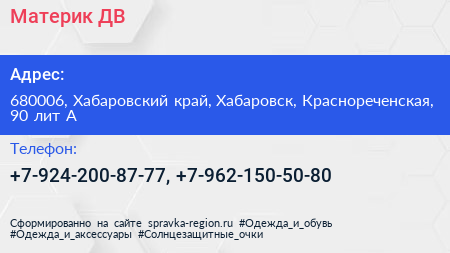 Материк-ДВ по адресу 680006, Хабаровский край, Хабаровск, Краснореченская, 90 лит А в дальнейшем Организация, размещена в следующих категориях: