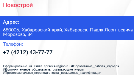 Новострой по адресу 680006, Хабаровский край, Хабаровск, Павла Леонтьевича Морозова, 84 в дальнейшем Организация, размещена в следующих категориях: