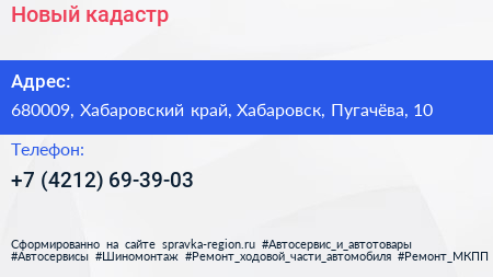 Новый кадастр по адресу 680009, Хабаровский край, Хабаровск, Пугачёва, 10 в дальнейшем Организация, размещена в следующих категориях: