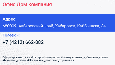 Офис+Дом, компания по адресу 680009, Хабаровский край, Хабаровск, Куйбышева, 34 в дальнейшем Организация, размещена в следующих категориях: