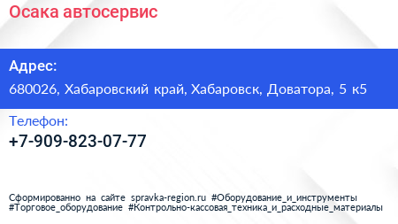 Осака, автосервис по адресу 680026, Хабаровский край, Хабаровск, Доватора, 5 к5 в дальнейшем Организация, размещена в следующих категориях:
