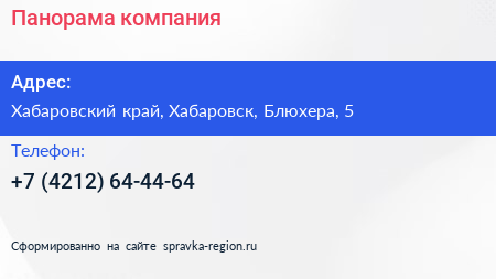 Панорама, компания по адресу Хабаровский край, Хабаровск, Блюхера, 5 в дальнейшем Организация, размещена в следующих категориях: