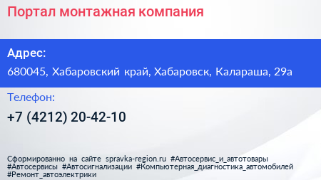 Портал, монтажная компания по адресу 680045, Хабаровский край, Хабаровск, Калараша, 29а в дальнейшем Организация, размещена в следующих категориях: