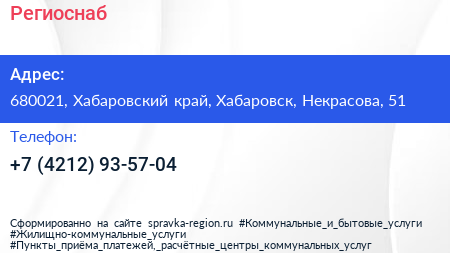 Региоснаб по адресу 680021, Хабаровский край, Хабаровск, Некрасова, 51 в дальнейшем Организация, размещена в следующих категориях: