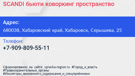 SCANDI, бьюти-коворкинг пространство по адресу 680038, Хабаровский край, Хабаровск, Серышева, 25 в дальнейшем Организация, размещена в следующих категориях: