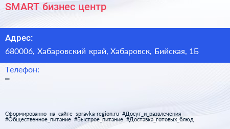 SMART, бизнес-центр по адресу 680006, Хабаровский край, Хабаровск, Бийская, 1Б в дальнейшем Организация, размещена в следующих категориях: