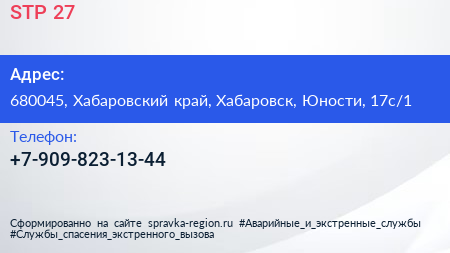 STP 27 по адресу 680045, Хабаровский край, Хабаровск, Юности, 17с/1 в дальнейшем Организация, размещена в следующих категориях: