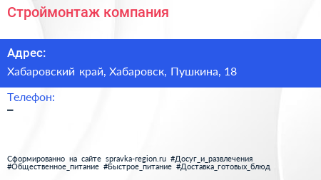 Строймонтаж, компания по адресу Хабаровский край, Хабаровск, Пушкина, 18 в дальнейшем Организация, размещена в следующих категориях:
