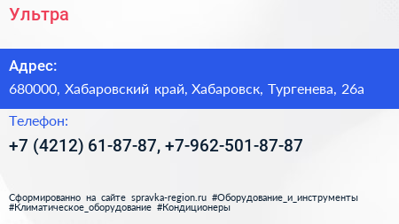 Ультра по адресу 680000, Хабаровский край, Хабаровск, Тургенева, 26а в дальнейшем Организация, размещена в следующих категориях: