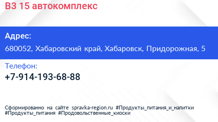 В3.15, автокомплекс по адресу 680052, Хабаровский край, Хабаровск, Придорожная, 5 в дальнейшем Организация, размещена в следующих категориях: