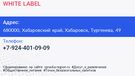 WHITE LABEL по адресу 680000, Хабаровский край, Хабаровск, Тургенева, 49 в дальнейшем Организация, размещена в следующих категориях: