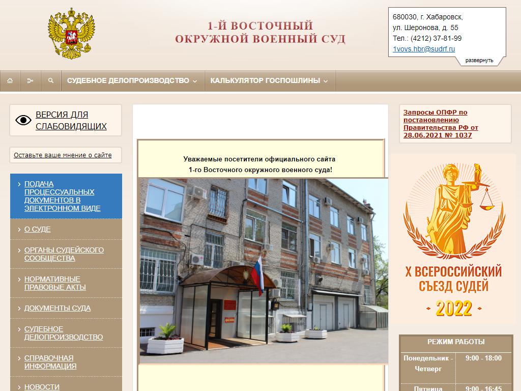 1-й Восточный окружной военный суд по адресу 680020, Хабаровский край, Хабаровск, Шеронова, 55 в дальнейшем Организация, размещена в следующих категориях: