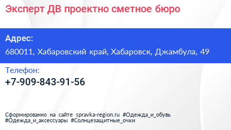Эксперт-ДВ, проектно-сметное бюро по адресу 680011, Хабаровский край, Хабаровск, Джамбула, 49 в дальнейшем Организация, размещена в следующих категориях: