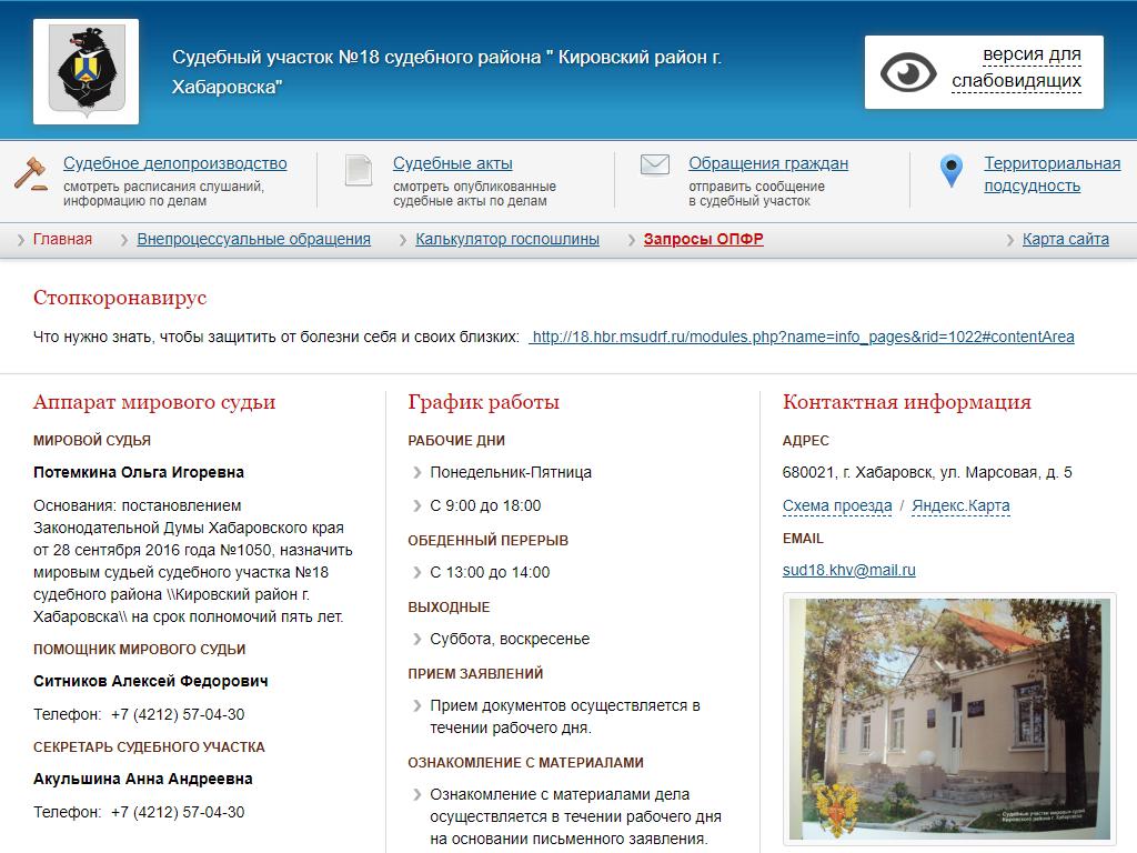 Мировые судьи Кировского района по адресу 680011, Хабаровский край, Хабаровск, Марсовая, 5 в дальнейшем Организация, размещена в следующих категориях: