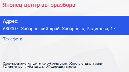 Японец, центр авторазбора по адресу 680007, Хабаровский край, Хабаровск, Радищева, 17 в дальнейшем Организация, размещена в следующих категориях: