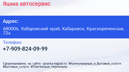 Яшма, автосервис по адресу 680006, Хабаровский край, Хабаровск, Краснореченская, 72а в дальнейшем Организация, размещена в следующих категориях: