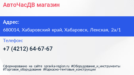 АвтоЧасДВ, магазин по адресу 680014, Хабаровский край, Хабаровск, Ленская, 2а/1 в дальнейшем Организация, размещена в следующих категориях: