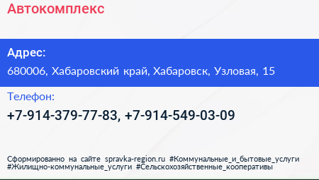 Автокомплекс по адресу 680006, Хабаровский край, Хабаровск, Узловая, 15 в дальнейшем Организация, размещена в следующих категориях: