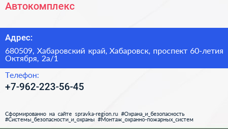Автокомплекс по адресу 680509, Хабаровский край, Хабаровск, проспект 60-летия Октября, 2а/1 в дальнейшем Организация, размещена в следующих категориях: