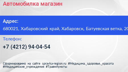 Автомобилка, магазин по адресу 680021, Хабаровский край, Хабаровск, Батуевская ветка, 20 в дальнейшем Организация, размещена в следующих категориях: