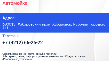 Автомойка по адресу 680013, Хабаровский край, Хабаровск, Рабочий городок, 1/1 в дальнейшем Организация, размещена в следующих категориях: