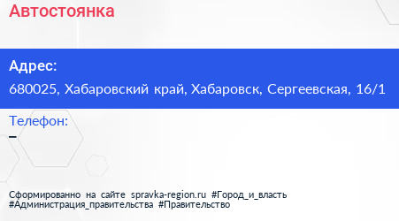 Автостоянка по адресу 680025, Хабаровский край, Хабаровск, Сергеевская, 16/1 в дальнейшем Организация, размещена в следующих категориях: