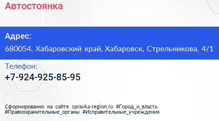 Автостоянка по адресу 680054, Хабаровский край, Хабаровск, Стрельникова, 4/1 в дальнейшем Организация, размещена в следующих категориях: