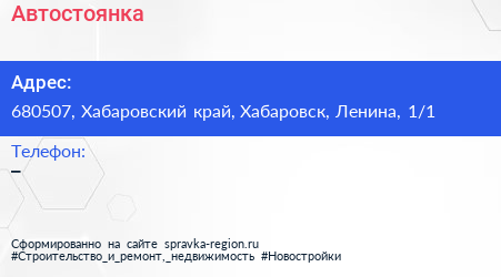 Автостоянка по адресу 680507, Хабаровский край, Хабаровск, Ленина, 1/1 в дальнейшем Организация, размещена в следующих категориях: