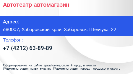 Автотеатр, автомагазин по адресу 680007, Хабаровский край, Хабаровск, Шевчука, 22 в дальнейшем Организация, размещена в следующих категориях: