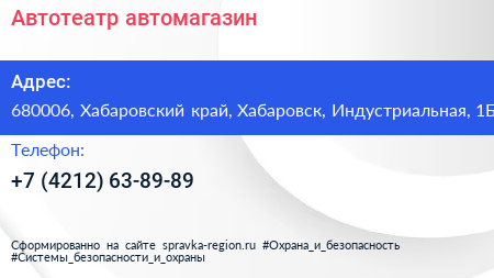 Автотеатр, автомагазин по адресу 680006, Хабаровский край, Хабаровск, Индустриальная, 1Б в дальнейшем Организация, размещена в следующих категориях: