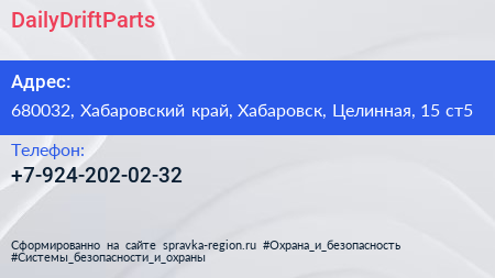 DailyDriftParts по адресу 680032, Хабаровский край, Хабаровск, Целинная, 15 ст5 в дальнейшем Организация, размещена в следующих категориях: