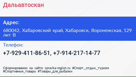 Дальавтоскан по адресу 680042, Хабаровский край, Хабаровск, Воронежская, 129 лит В в дальнейшем Организация, размещена в следующих категориях: